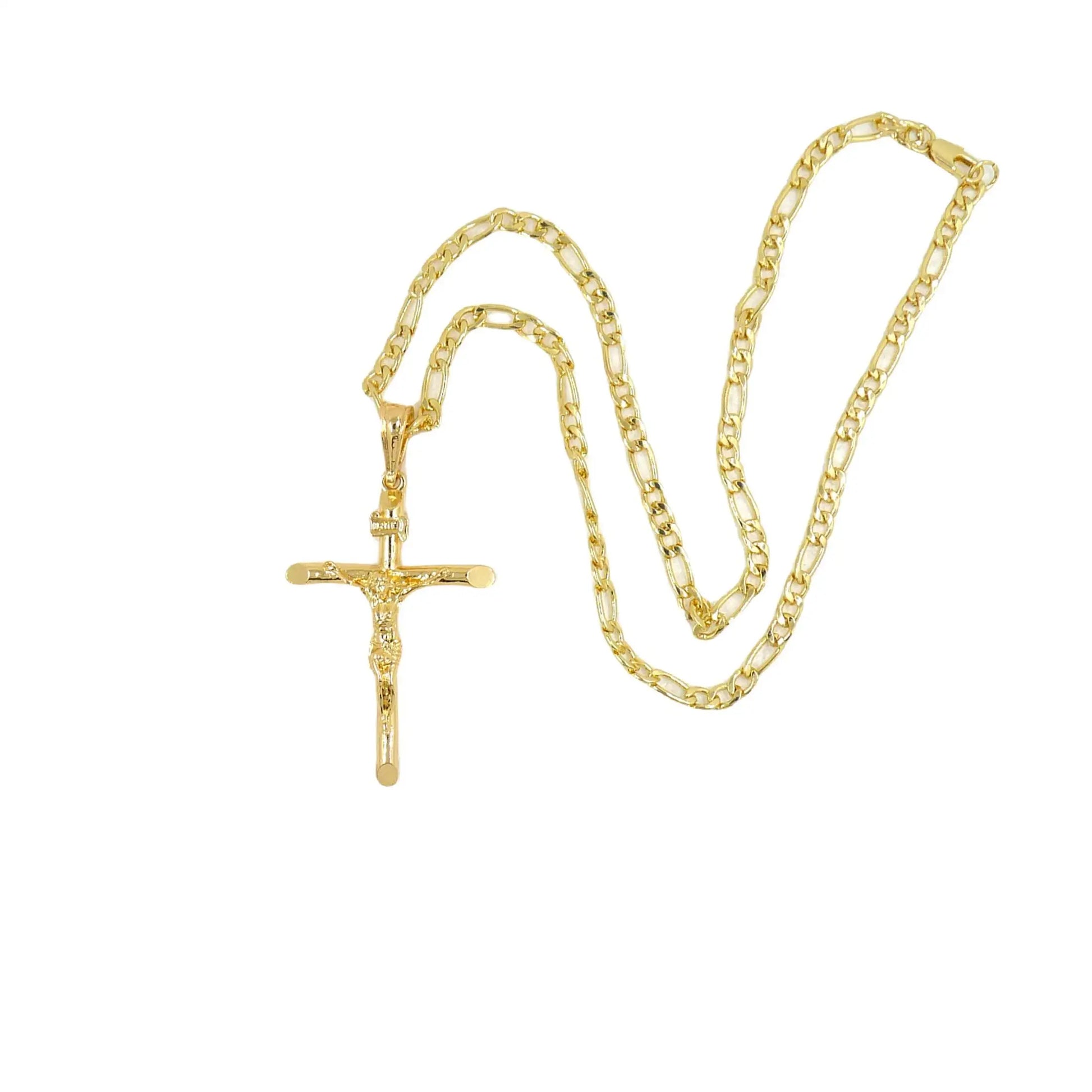 Gold cross men's and womenJesusreligious pendants/charms - Figaro style chain san judas necklace